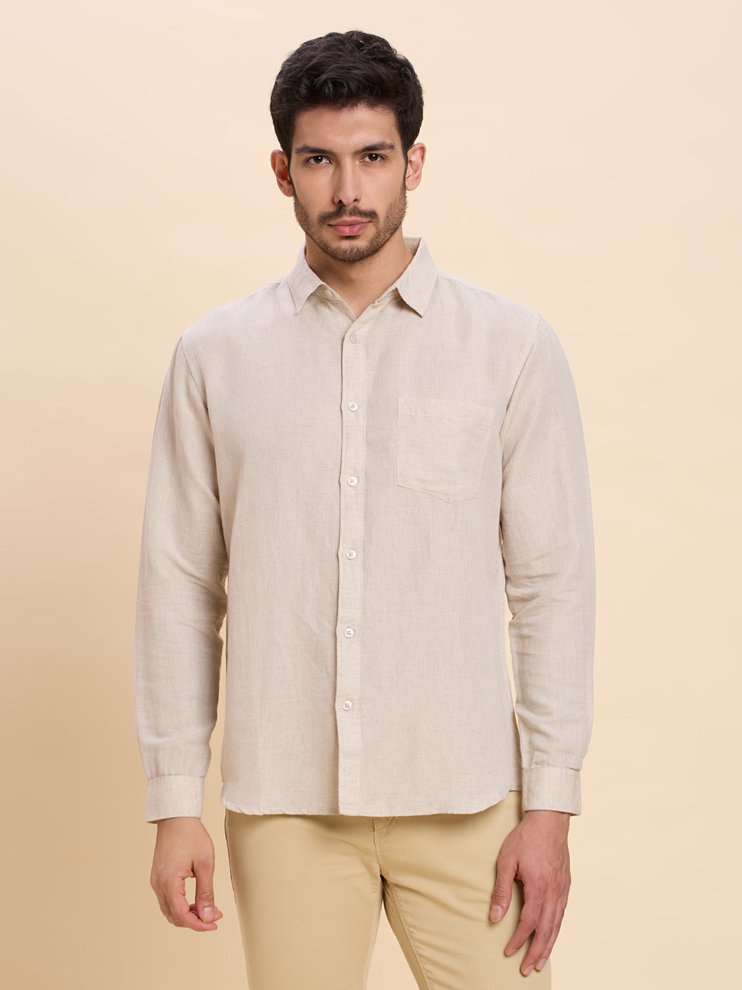 Light Yellow Linen Shirt for Men | Breathable & Lightweight Summer Wear